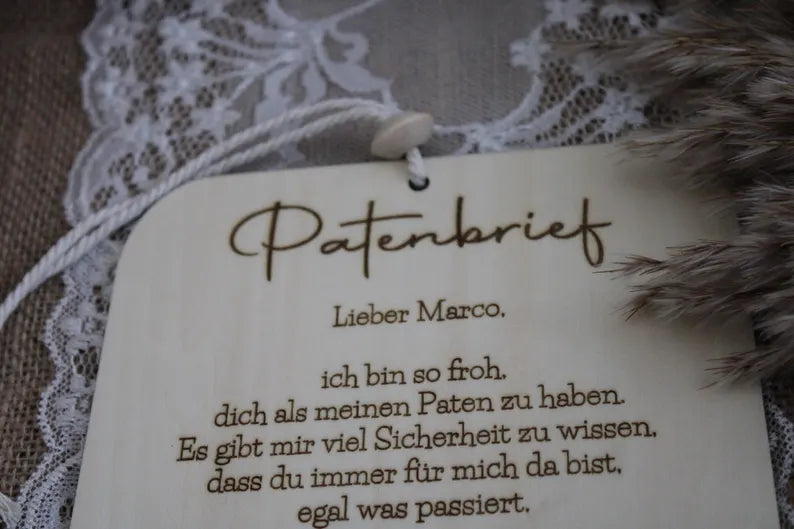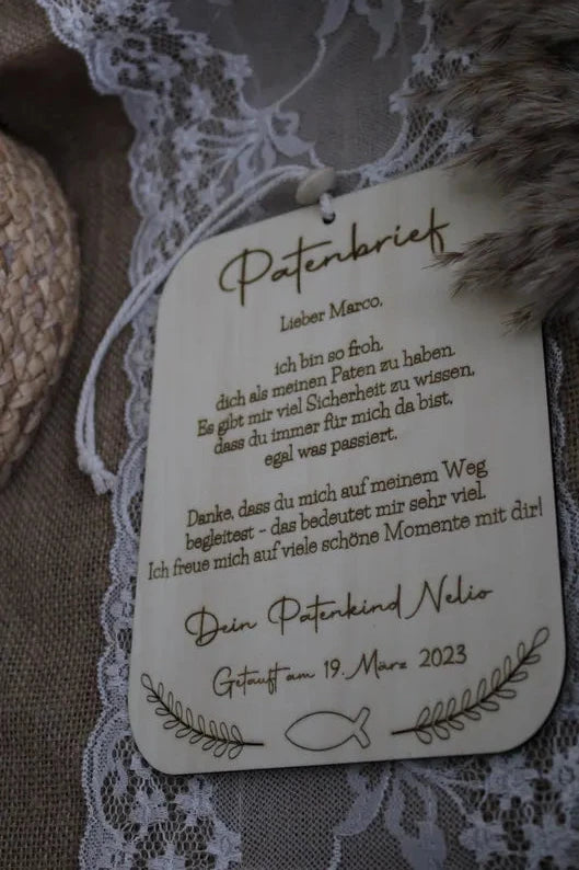 Überrasche deinen Paten oder die Paten deiner Kinder mit einem einzigartigen und liebevollen Geschenk: Unserem Patenbrief aus Holz.